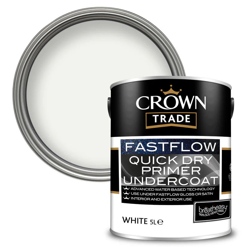 A trade quality quick drying undercoat from Crown Trade which has been designed to use as an undercoat for Fastflow Satin or Fastflow Gloss.