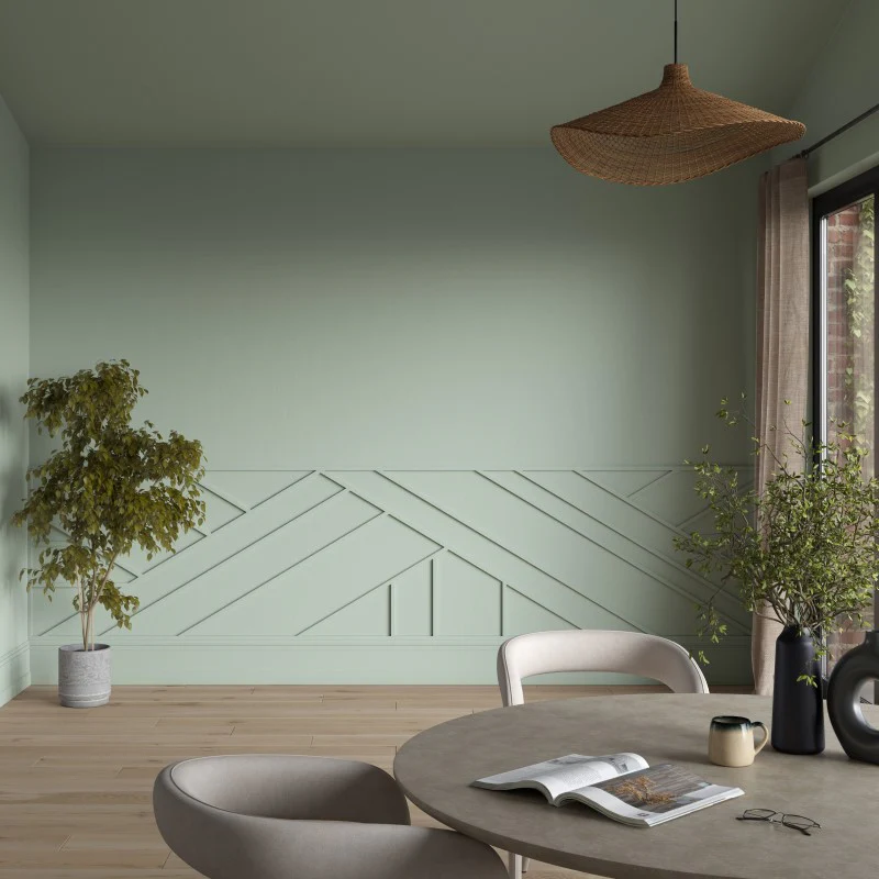 This beautiful Dulux sage green is a mid-tone, blue-based green that takes its name from the medicinal herb and cottage garden favourite. Sage green paint has become a modern classic for interiors, complementing all tones of wood and also sits comfortably against white or black in modern and classical homes.