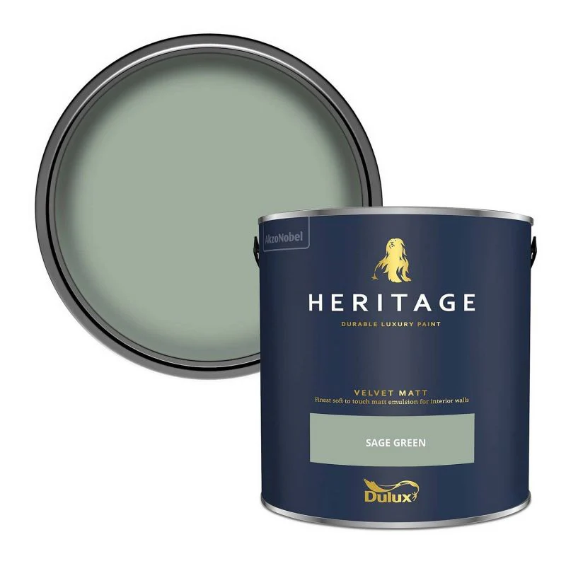 Dulux Heritage Matt Emulsion is a durable and washable luxury water-based paint which is available to be mixed into 112 elegant colours. The Matt Emulsion paint comes in a unique collection of highly fashionable shades, including sage green Dulux Heritage, and delivers a high-quality finish every time.