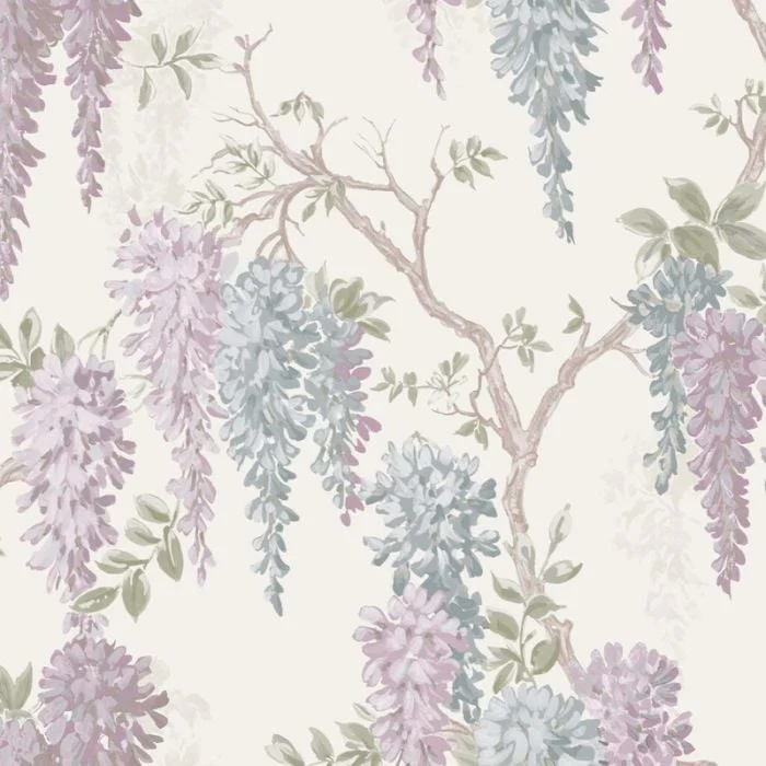 Featuring soft trailing branches and Wisteria blossoms, this Laura Ashley wallpaper is sure to compliment any room and provide your walls with a beautiful luxurious finish.