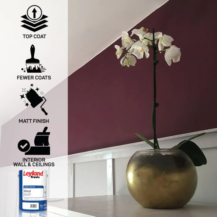 Perfect for painting living rooms, bedrooms or home offices the Leyland Trade Vinyl Matt is to be used on interior walls & ceilings. Using our colour match service it can be mixed into around 16,000 different colours.