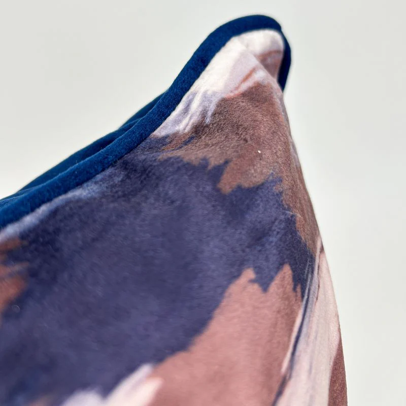 Add an eye catching addition to your interiors with the Malini Distressed Navy cushion featuring an hazy printed design in taupe and blue on faux suede.
