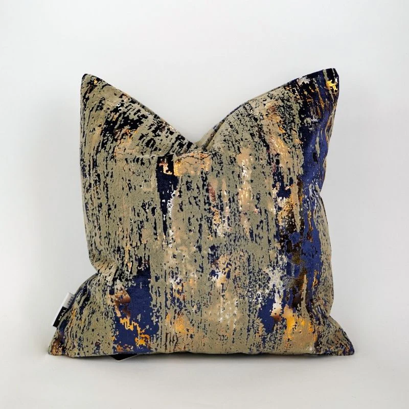 The Malini Torcello Navy Metallic Cushion is a striking addition to your decor, featuring a deep navy base embellished with mesmerising metallic flakes. Its unique cracked design adds texture and depth, making it a standout sofa cushion.