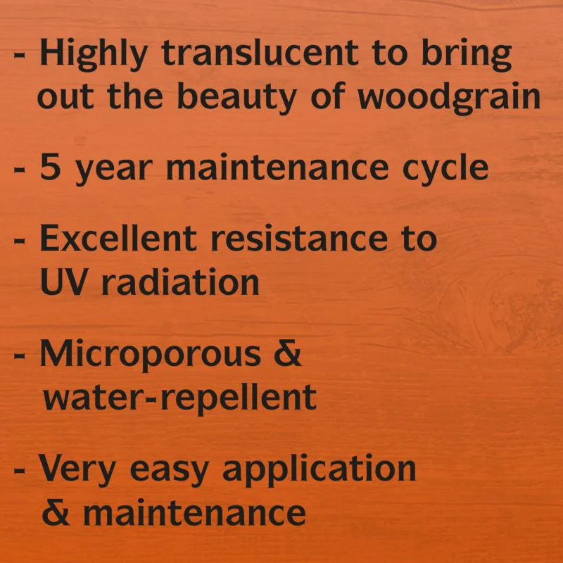 The Sikkens Cetol Filter 7 Plus is extremely easy to apply and maintain and has a 5 year maintenance cycle. The stain is highly durable and offers unrivalled protection from the damaging effects sunlight can have on wood finishes.